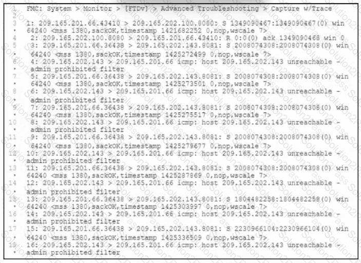 An engineer is troubleshooting a device that cannot connect to a web server. The connection is initiated from the Cisco FTD inside interface and attempting to reach 10.0.1.100 over the non-standard port of 9443 The host the engineer is attempting the connection from is at the IP address of 10.20.10.20. In order to determine what is happening to the packets on the network, the engineer decides to use the FTD packet capture tool Which capture configuration should be used to gather the information needed to troubleshoot this issue?