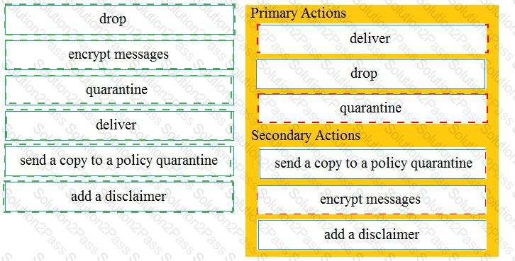 Drag and drop the Cisco ESA reactions to a possible DLP from the left onto the correct action types on the right.