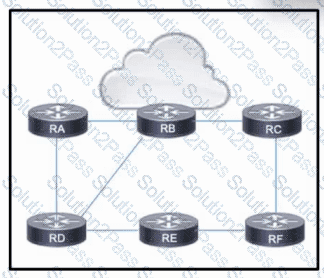 Refer to the exhibit. The network is running OSPF, and access to the internet is provided through router RB. Router RA connects to several servers that provide services to users connected to RC and RF. User traffic is growing, and the engineering team wants to mitigate the future potential for congestion when the servers are experiencing heavy use.