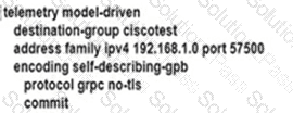 An engineer is developing a configuration script to enable dial-out telemetry streams using gRPC on several new devices. TLS must be disabled on the devices. Which configuration must the engineer apply on the network?