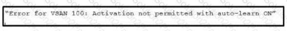 An engineer must activate the port-security database on a Cisco MDS 9000 Series Switch for VSAN 100, but receives the error shown. Which command completes the