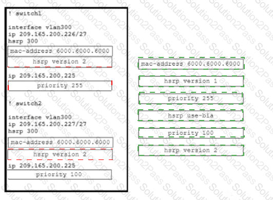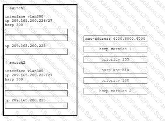 Drag and drop the commands from the the right to complete a configuration of the HSRP on the left. The commands are used more than once. Not all commands are used