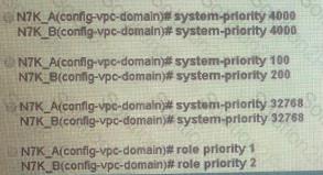 Refer to the exhibit. Which configuration ensure that the cisco Nexus 7000 series switches are the primary devices for LACP?