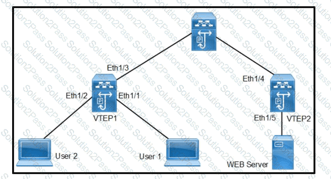 Refer to the exhibit. User1 and User2 are connected to VTEP1 switch. The users can reach the WEB server. The monitoring tool shows degrading network performance and excessive traffic is sent from User2 to reach the WEB server. Which storm control percentage levels must be used to suppress traffic from User2 and allow all traffic types from User1?