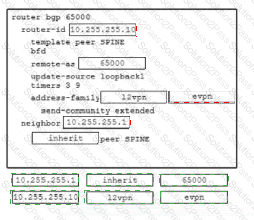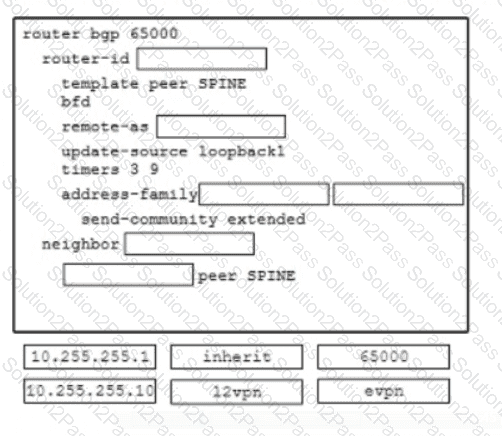 Refer to the exhibit An engineer must provision a VXLAN deployment The OSPF has already been configured as the underlay protocol All BGP configurations will be performed using the template method The deployment must meet these requirements