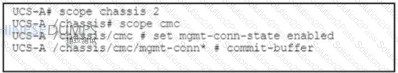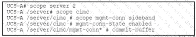 A Cisco UCS C-Series server needs to be installed in a data center. The server must be managed by using Cisco UCS Manager with a single cable for management and data traffic. Which set of commands must be run on the server after a physical connection is established?