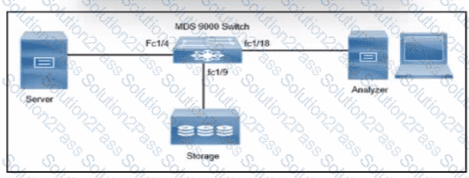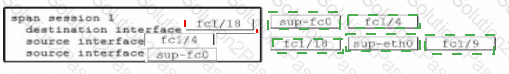 Refer to the exhibit. An engineer must capture Fibre Channel traffic from the server and the supervisor to the Cisco MDS 9000 Series Switch fabric. The traffic must be forwarded to the analyzer Drag and drop the code snippets from the right onto the blanks in the code on the left to complete the configuration. Not all code snippets are used.