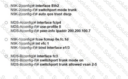 An engineer implements an environment with multiple traffic types on a consolidated I/O link between Cisco Nexus 9000 Series Switch and MDS 9000 Series Switch The configuration must meet these requirements:
