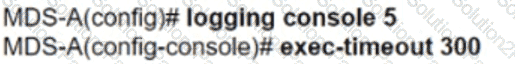 A network engineer needs to configure system logging on the Cisco MDS Series Switch. The messages must be displayed with the severity level of " warning " and above. For security reasons, the users must be logged out of the console after 5 minutes of inactivity. Which configuration must be applied to meet these requirements?