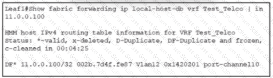 Refer to the exhibit A Cisco VXLAN fabric must detect when a VM with an IP address of 11.0.0.100 moves between servers The engineer must also unfreeze the endpoint Which command accomplishes this goal?