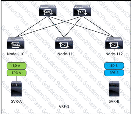 Refer to the exhibit. SVR-A in EPG-A/BD-A fails to reach SVR-B in EPG-B/BD-B. Which two conditions should be verified to analyze the traffic between the two EPGs? (Choose two.)