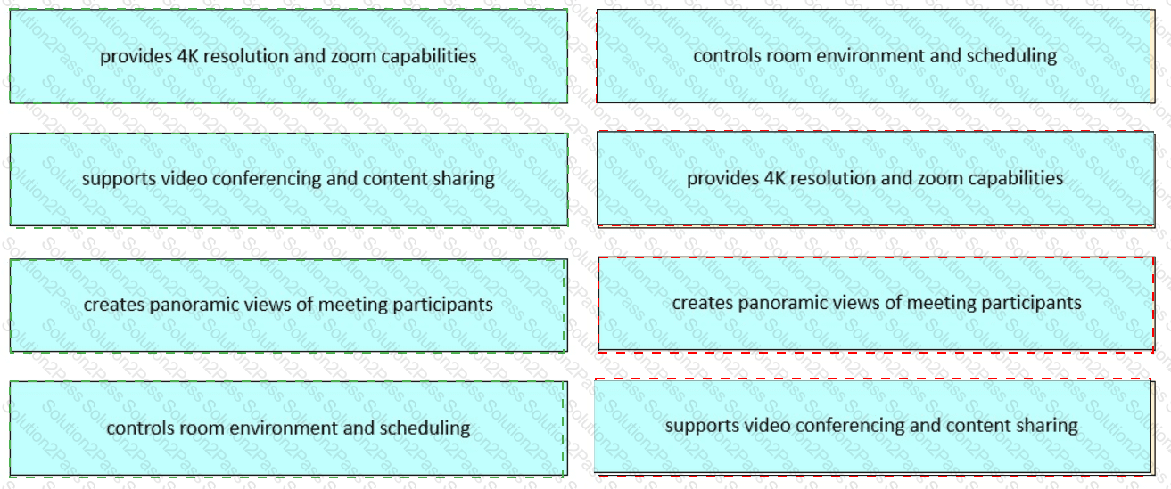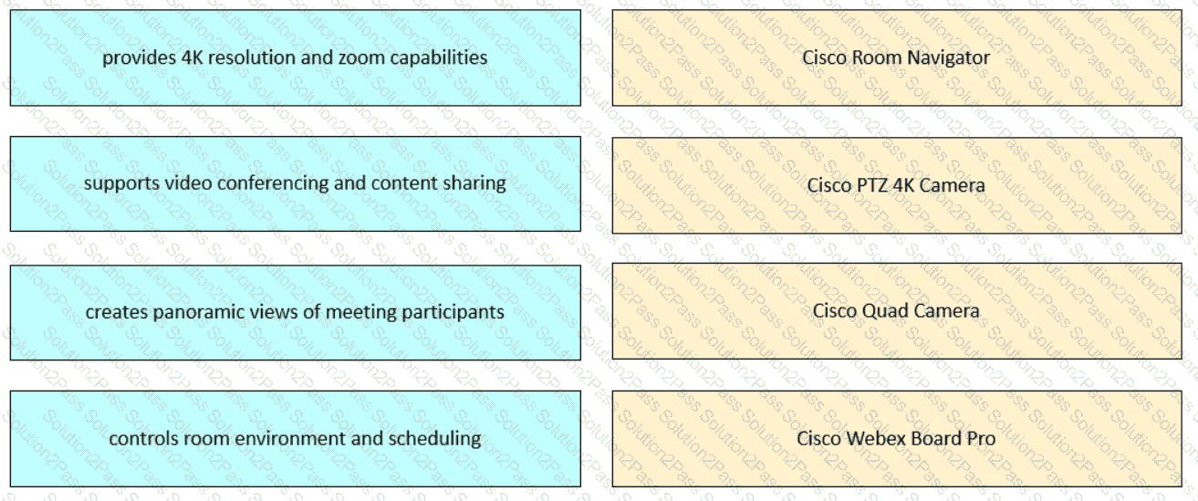 Drag and drop the Cisco collaboration components from the left onto the corresponding descriptions on the right.
