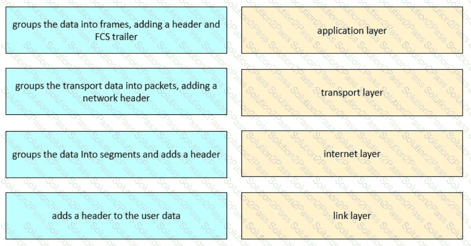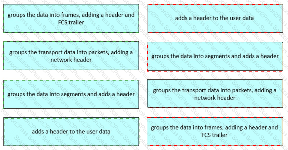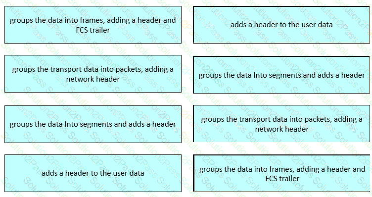 Refer to the exhibit. Drag and drop the steps in the TCP/IP encapsulation process from the left onto the corresponding layer on the right.