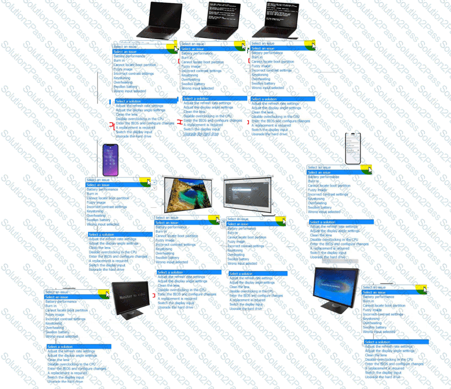 Click on each device to review the issue. Then select the appropriate issue and solution