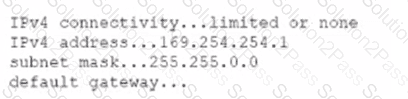 A user reports limited or no connectivity on a laptop. A technician runs ipconf ig /all with the following result: