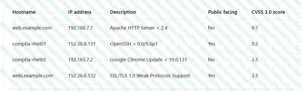 A security engineer is reviewing the following vulnerability scan report: