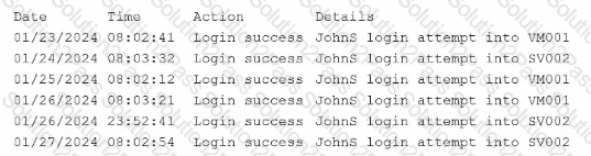 A security engineer receives an alert from the SIEM platform indicating a possible malicious action on the internal network. The engineer generates a report that outputs the logs associated with the incident: