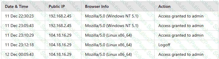 A building camera is remotely accessed and disabled from the remote console application during off-hours. A security analyst reviews the following logs: