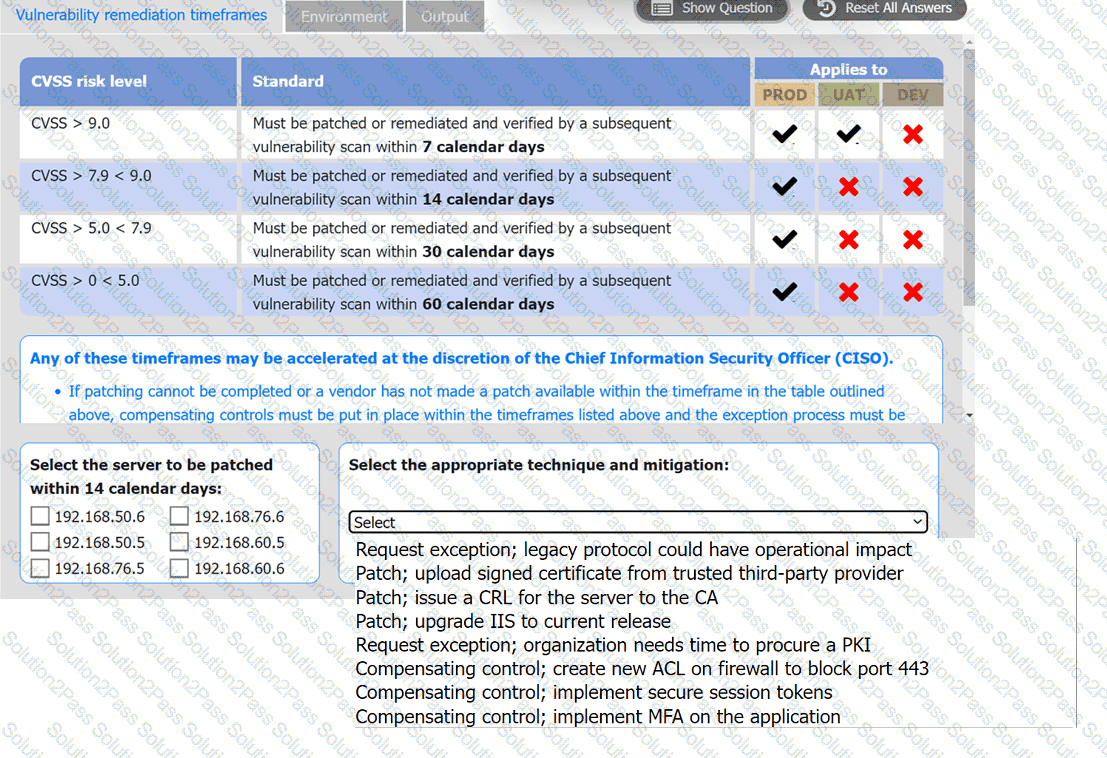 Based on the organization's environment architecture and remediation standards,