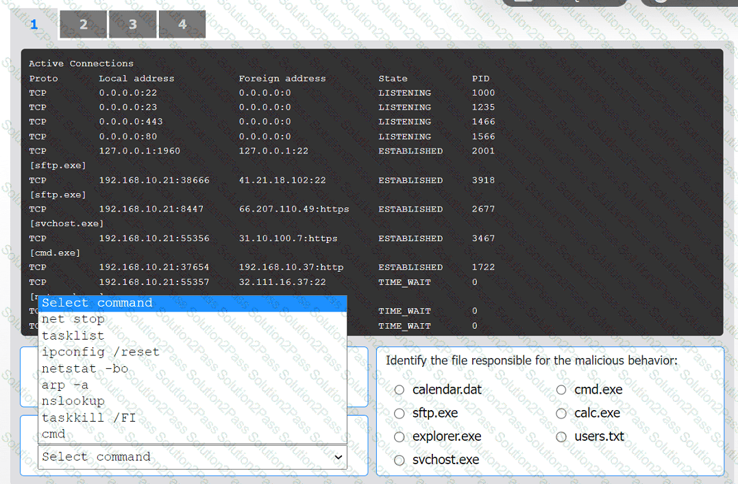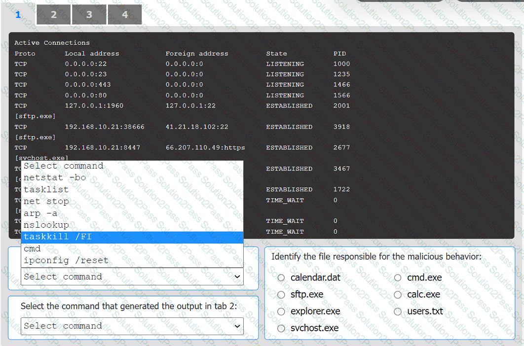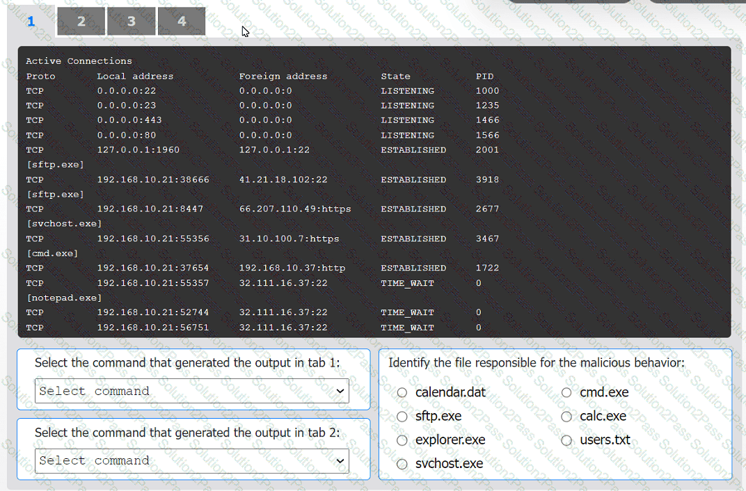 Select the command that generated the output in tabs 1 and 2.
