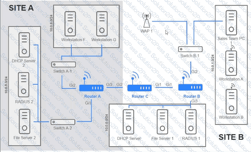 Users are unable to access files on their department share located on flle_server 2. The network administrator has been tasked with validating routing between networks hosting workstation A and file server 2.
