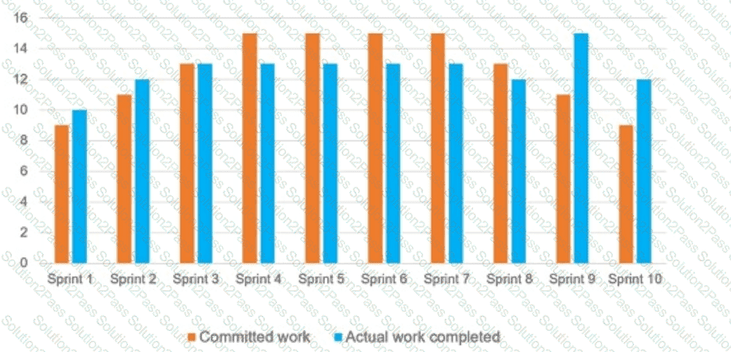Given the following chart showing committed work (orange) vs. actual work completed (blue) across 10 sprints: