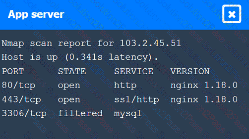 A penetration tester performs a service enumeration process and receives the following result after scanning a server using the Nmap tool: