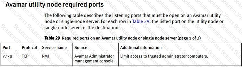 A customer is unable to connect to their Dell Avamar server when using the Avamar Administrator GUI. If default settings are being used, which port must be open for a successful connection?