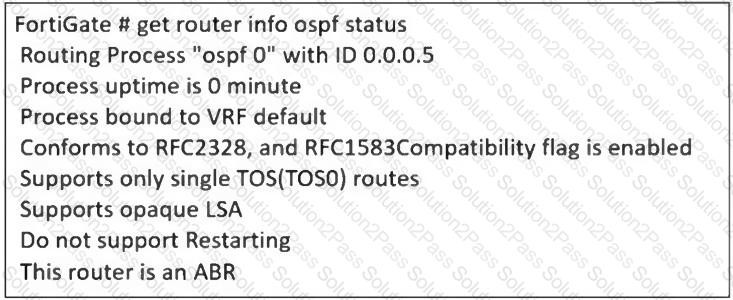 The partial output of an OSPF command is shown. While checking the OSPF status of FortiGate, you receive the output shown in the exhibit. Based on the output, which two statements about FortiGate are correct? (Choose two answers)