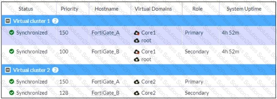An HA configuration of an active-active (A-A) cluster with the same HA uptime is shown. You want HQ-NGFW-2 to handle the Core2 VDOM traffic. Which modification must you make to achieve this outcome? (Choose one answer)
