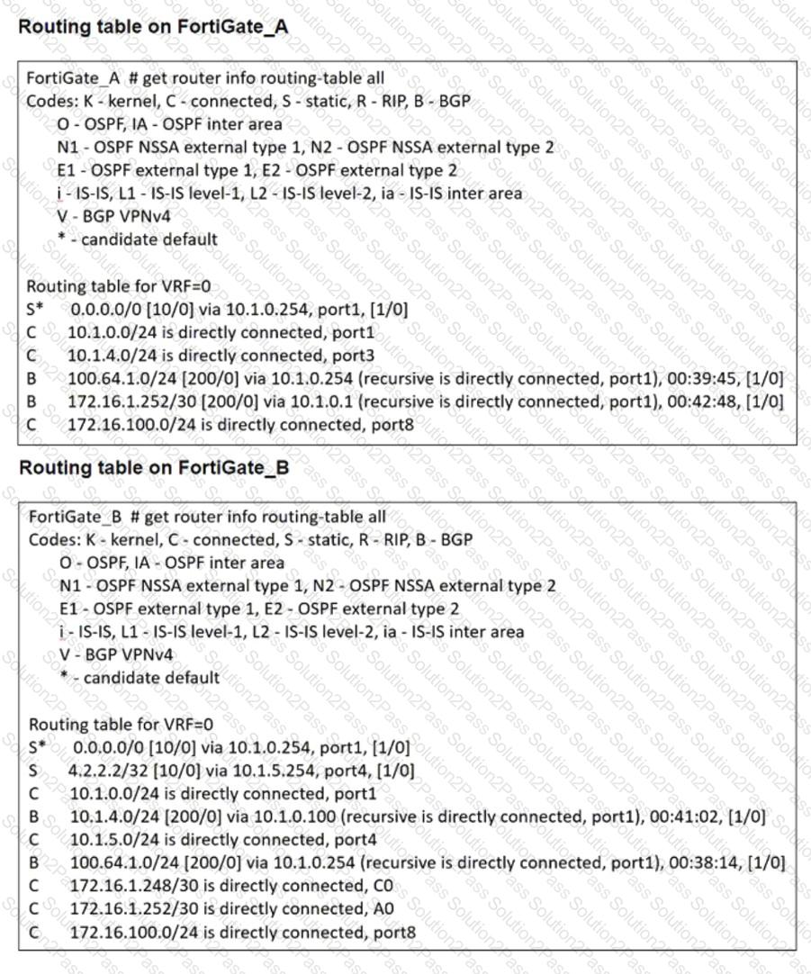 The administrator wants to dynamically add only route 172.16.1.248/30 on FortiGate_A.