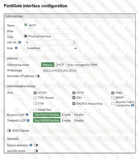 Which three critical configurations must you implement on the FortiGate device? (Choose three.)