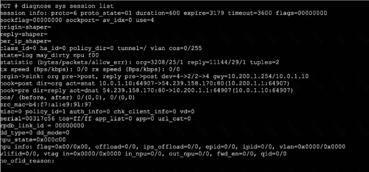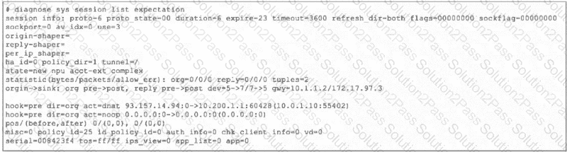 Refer to the exhibits, which show the configuration on FortiGate and partial internet session information from a user on the internal network.