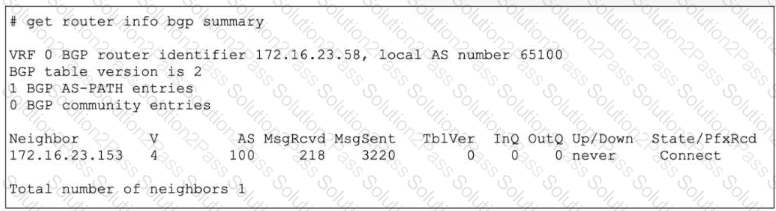 Refer to the exhibit, which shows the output of the command get router info bgp neighbors 100.64.2.254 advertised-routes.