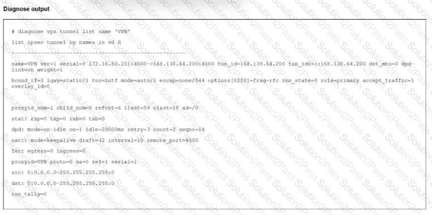 The VPN is not up. To diagnose the issue, the administrator enters the following CLI commands on an SSH session on FortiGate: