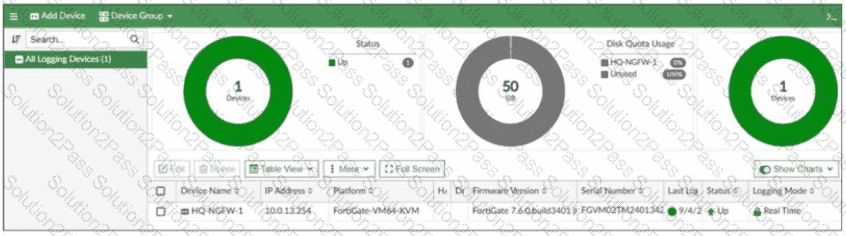 The FortiGate device HQ-NGFW-1 with the IP address 10.0.13.254 sends logs to the FortiAnalyzer device with the IP address 10.0.13.125. The administrator wants to verify that reliable logging is enabled on HQ-NGFW-1.