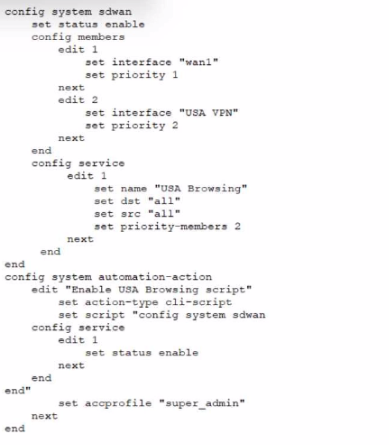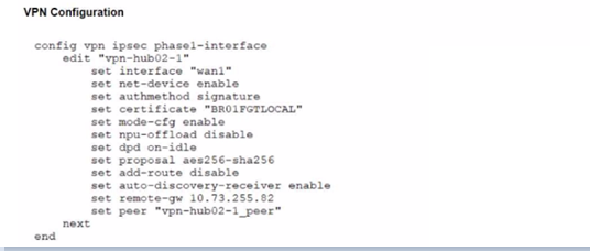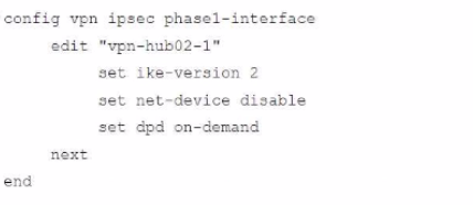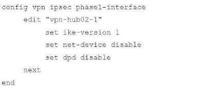 Refer to the exhibit, which shows a FortiGate configuration snippet.