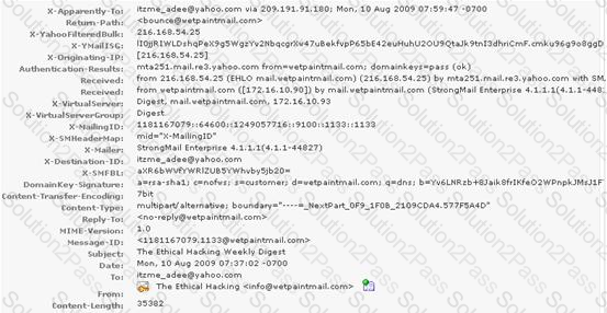 You work as a Network Security Analyzer. You got a suspicious email while working on a forensic project. Now, you want to know the IP address of the sender so that you can analyze various information such as the actual location, domain information, operating system being used, contact information, etc. of the email sender with the help of various tools and resources. You also want to check whether this email is fake or real. You know that analysis of email headers is a good starting point in such cases. The email header of the suspicious email is given below: