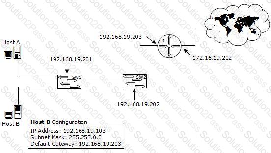 You work as a Network Administrator for XYZ CORP. The company has a TCP/IP-based network environment. The network contains Cisco switches and a Cisco router. A user is unable to access the Internet from Host B. You also verify that Host B is not able to connect to other resources on the network. The IP configuration of Host B is shown below: