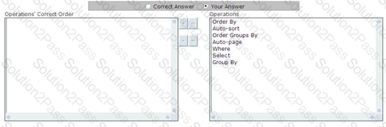 You work as a Windows Application Developer for ABC Inc. The company uses Visual Studio .NET 2008 as its application development platform. You create a Windows Forms application using .NET Framework 3.5. The application contains a data-bound control. You use the LinqDataSource control to use LINQ in the ASP.NET application by setting properties in markup text. The LinqDataSource control uses LINQ to SQL to automatically generate the data commands. You are required to perform data operations by using the LinqDataSource control. What is the correct order in which data operations are applied?