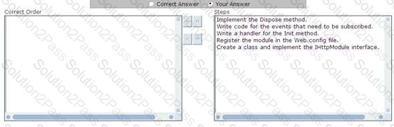 You work as a Software Developer for ABC Inc. The company uses Visual Studio.NET 2008 as its application development platform. You create an ASP.NET Web application using the .NET Framework 3.5. You want to use a HTTP module called on each and every request made by the application. It is called as part of the ASP.NET request pipeline. It has right to access life-cycle events throughout the request. You also want to ensure that the HTTP module allows a user to inspect incoming and outgoing requests and take appropriate action based on the request. What will be the correct order to create the HTTP module?