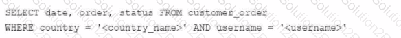 Your company's customer_order table in BigOuery stores the order history for 10 million customers, with a table size of 10 PB. You need to create a dashboard for the support team to view the order history. The dashboard has two filters, countryname and username. Both are string data types in the BigQuery table. When a filter is applied, the dashboard fetches the order history from the table and displays the query results. However, the dashboard is slow to show the results when applying the filters to the following query: