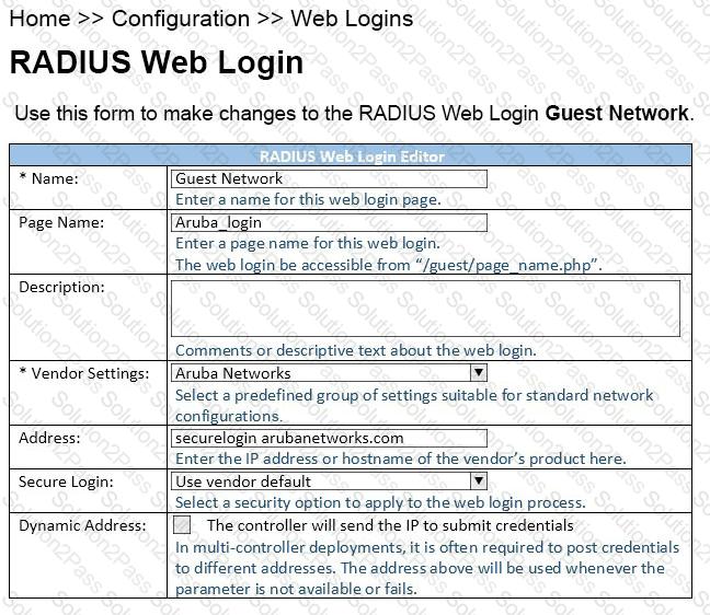 When configuring a Web Login Page in ClearPass Guest, the information shown is displayed.