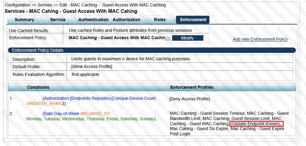 Based on the MAC Caching service information shown, which statement about the guests’ MAC address is accurate?