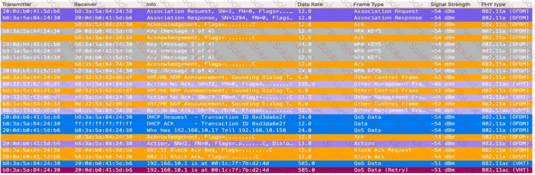 A customer is reporting mat connectivity is Tailing for some wireless client Devices. What are your conclusions from the capture? (Select two.)