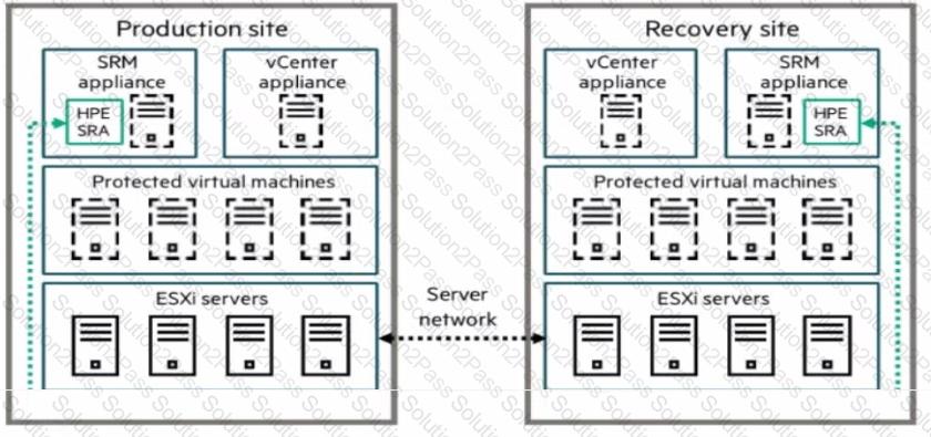 A company is implementing a disaster recovery solution. The Asynchronous Remote Copy feature has been implemented between the HPE AUetra 9000 arrays at both sites. The customer Is interested in providing a disaster recovery (DR) solution that allows for business connectivity of their VMware VMs.