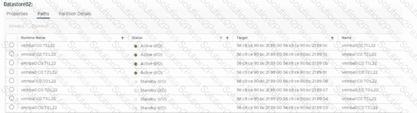 You are analyzing a customer environment with two Alletra 6000 arrays in a VMware stretched cluster. Application latency differs slightly depending on whether the VM is on Datastore01 or Datastore02.