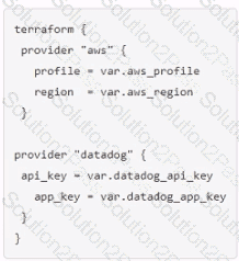You ate creating a Terraform configuration which needs to make use of multiple providers, one for AWS and one for Datadog. Which of the following provider blocks would allow you to do this?