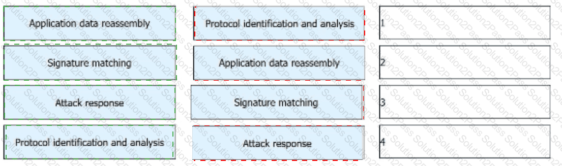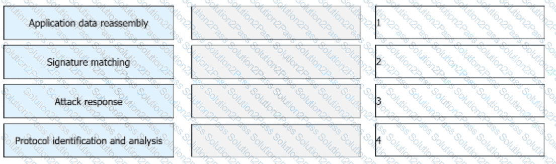 The IPS detects and analyzes all packets passing through a device and determines whether to permit or block the packets in real time based on the comprehensive detection mechanism. Sort the following steps into the correct order based on the basic implementation mechanism of the IPS.