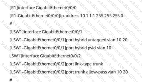 Refer to the graphic, after the ping 10.1.1.2 command is executed on R1, LSW1 receives a tagged data frame from VLAN 10 on LSW2.